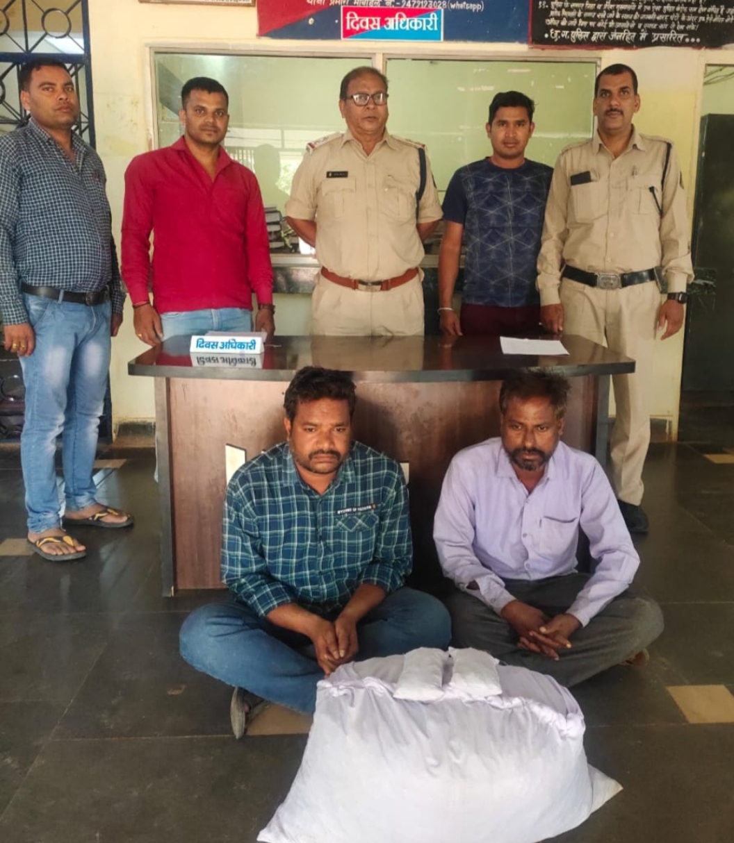 पुलिस अधीक्षक महोदय बिलासपुर संतोष सिंह के द्वारा बिलासपुर जिले में निजात अभियान चलाया जा रहा है। निजात अभियान के अंतर्गत नशामुक्ति हेतु अतिरिक्त पुलिस अधीक्षक (ग्रामीण) राहुल देव शर्मा एवं अनुविभागीय पुलिस अधिकारी सिद्धार्थ बघेल के मार्गदर्शन में थाना कोटा में अवैध शराब एवं अवैध गांजा बिक्री करने वालों के विरुद्ध लगातार कार्यवाही की जा रही है इसी परिप्रेक्ष्य में आज दिनांक 30.04.2023 को थाना प्रभारी उत्तम साहू को सूचना मिला की देवरियापारा श्मशान घाट के पास कान्हा गिरी गोस्वामी अपने घर में अवैध रूप से गांजा बिक्री करने के लिए रखा है सूचना पर तत्काल वरिष्ठ अधिकारियों को अवगत कराते हुए मौके पर टीम रवाना हुआ। मुखबीर के निशानदेही पर देवरियापारा श्मशान घाट के पास संदेही कान्हा गिरी गोस्वामी के घर घेराबंदी कर रेड कार्यवाही किया। जो घर में दो पुरुष मिले जिसे नाम पता पूछने पर अपना नाम 01.कान्हा गिरी गोस्वामी पिता भरत गिरी गोस्वामी उम्र 37 वर्ष साकीन देवरियापारा श्मशान घाट के पास कोटा 02.गजानंद गिरी गोस्वामी पिता गरीब गिरी गोस्वामी उम्र 45 साल साकीन लमकेना थाना कोटा जिला बिलासपुर (छ.ग.) बताया। मौके पर विधिवत् तलाशी के दौरान टीने का संदूक/पेटी के अंदर एक सफेद रंग के प्लास्टिक की बोरी जिसके अंदर भूरे रंग के 12 पैकेट में गांजा मिला। जिसे संदेही कान्हा गिरी गोस्वामी एवं गजानंद गिरी गोस्वामी के द्वारा निकाल कर पेश किया। वजन कराने पर 12 किलोग्राम होना पाया गया। मौके पर मादक पदार्थ गांजा कुल 12 किलोग्राम को जप्त कर कब्जा पुलिस लिया गया। आरोपीगण कान्हा गिरी गोस्वामी एवं गजानंद गिरी गोस्वामी को अपराध धारा सदर का अपराध सबूत पाए जाने से विधिवत् गिरफ्तार कर न्यायिक रिमांड पर भेजी जाती है।