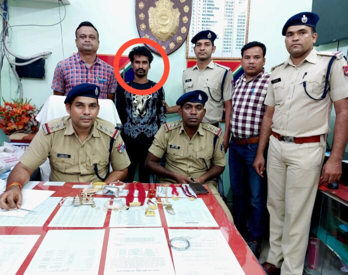 *4. घटना का संक्षिप्त विवरण* :-वरिष्ठ मण्डल सुरक्षा आयुक्त दिनेश सिंह तोमर सर के निर्देशन में चलाये जा रहे ऑपरेशन-यात्री सुरक्षा अभियान के क्रम मे प्रभारी रे.सु.ब.पोस्ट बिलासपुर निरीक्षक भास्कर सोनी,प्रभारी टास्क टीम-01 उ.नि.कुलदीप सिंह साथ मे प्र.आ.रमेश कुमार प्र.आ.सत्यम सरकार आ.बैद्यनाथ एवं रेसुब पोस्ट बिलासपुर सउपनि टी. आर. कुर्रे,आ.जगदीश सिंह के द्वारा आज दिनांक -30.06.23 को सीसीटीवी मानिटरिंग के दौरान एक सदिग्ध ब्यक्ति को बार- बार प्लेटफार्म मे संदिग्ध अवस्था मे घूमते हुए पाए जाने पर संदिग्ध गतिविधि प्रतीत होने पर घेराबंदी कर पकड़ा गया पूछ -ताछ करने पर अपना नाम उपरोक्त अनुसार बताया संदिग्ध को रे.सु.ब.पोस्ट बिलासपुर लाकर तलाशी लेने पर एक नग सैमसंग मोबाईल विभिन्न प्रकार के आभूषण जिसमे- 06 नग सोने के मंगलसूत्र 01 सोने का पेंडल, अंगूठी,चांदी की पायल एक जोड़ी,चांदी का पायजेम एक जोडी,चांदी की भगवान की मूर्ति इत्यादि बरामद हुआ उक्त बरामद सामान के संबंध में पूछताछ करने पर उचित दस्तावेज पेश नही कर सका एवं आगे पूछताछ में उक्त सामान को मुर्राभट्टा बिलासपुर एरिया से सूने मकान से ताला तोड़कर चोरी करना बयान किया। इस संबंध में थाना तोरवा से समन्वय करने पर अज्ञात के विरुध्द पूर्व मे अपराध कमांक- 0334/2023 दिनांक 29.06.23 धारा -380,454 भादवि दर्ज होना पाया गया जिसमे प्रार्थी निशा सिंह के मकान तोरवा हेमुनगर मुर्रा भटठा रोड से चोरी करने का प्रथम सूचना रिपोर्ट दर्ज होना पाया गया। अतः उक्त पकड़ा गया व्यक्ति शिवा चौधरी एवं उसके कब्जे से बरामद उक्त सभी आभूषण एवं मोबाइल जिसकी कुल अनुमानित कीमत 90000 /- रू के साथ उचित कार्यवाही हेतु तोरवा थाना सुपुर्द किया गया।उक्त अपराध का आरोपी पाकर मामले मे सम्बद्ध किया गया जिसे कल दिनांक को माननीय न्यायालय के समक्ष प्रस्तुत किया जायेगा