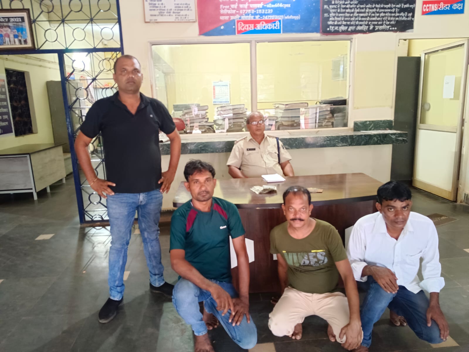 पुलिस अधीक्षक महोदय बिलासपुर संतोष सिंह के द्वारा जिला में जुआ/सट्टा खेलने वाले तथा अवैध शराब बिक्री करने वालों के विरुद्ध त्वरित कार्यवाही करने निर्देशित किया गया है। जिसके परिप्रेक्ष्य में अतिरिक्त पुलिस अधीक्षक (ग्रामीण) राहुल देव शर्मा एवं अनुभागीय पुलिस अधिकारी कोटा सिद्धार्थ बघेल के मार्गदर्शन में कोटा पुलिस द्वारा कोरीडेम कोटा में जुआ खेलने वाले 05 आरोपियों को गिरफ्तार कर विधिवत् कार्यवाही की गई तथा 02 आरोपीगण से 42 पाव देशी प्लेन मदिरा जप्त कर विधिवत् कार्रवाई की जा रही है।