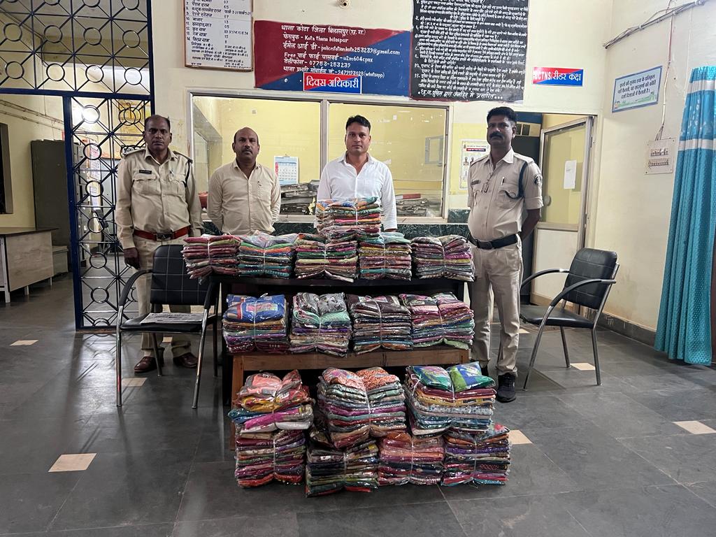 कोटा पुलिस द्वारा पेट्रोलिग दौरान ग्राम जोगीपुर-भैंसाझार नहर किनारे 200 नग साडी कीमती करीबन 2,40,000 रुपए लावारिस हालत में मिलने पर किया गया जप्त