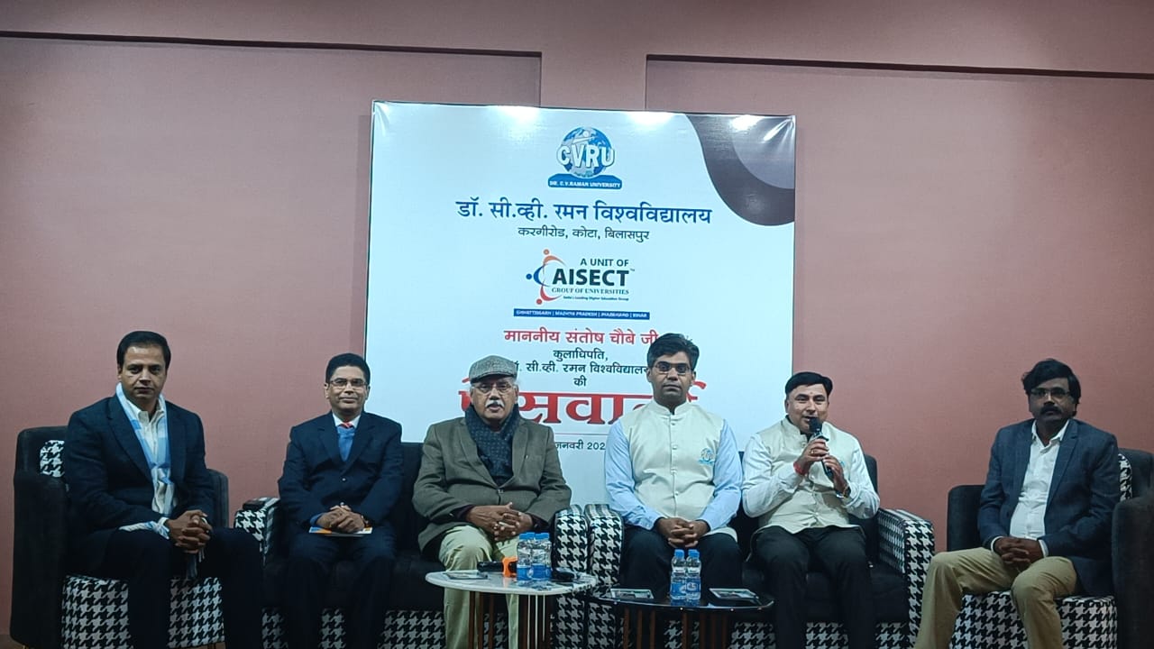 नई शिक्षा नीति के किवान्नययन में सीवीआरयू, अग्रणी चौबे विज्ञान, कला एवं टेक्नालॉजी के नवाचारों ने सीवीआरयू को बनाया सर्वोतम-चौबे डॉ.सी.व्ही.रमन विश्वविद्यालय के कुलाधिपति संतोष चौबे ने की पत्रकारों से चर्चा विश्वविद्यालय की उपलब्धिों एवं भावी योजनाओं को किया साझा नैक ए ग्रेड प्राप्त करने वाला प्रदेश का पहला निजी विवि बना सीवीआरयू -संतोष