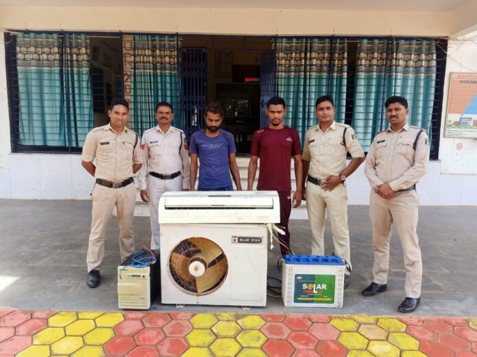 आरोपियों के कब्जे से आउटडोर फैन, एसी ,सोलर ट्यूबलर कंपनी का बैटरी,इनवर्टर , अपराध में प्रयुक्त मोटरसाइकिल ,जुमला कीमती 50,000 जप्त किया गया